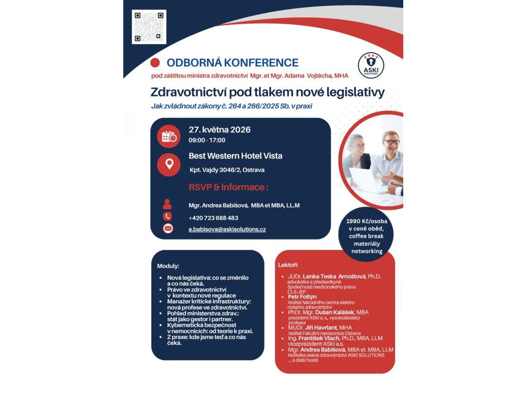 Nová legislativa zásadně mění fungování zdravotnických zařízení. Tato konference vám pomůže zorientovat se v požadavcích zákonů a především pochopit, jak je aplikovat v každodenní praxi.
